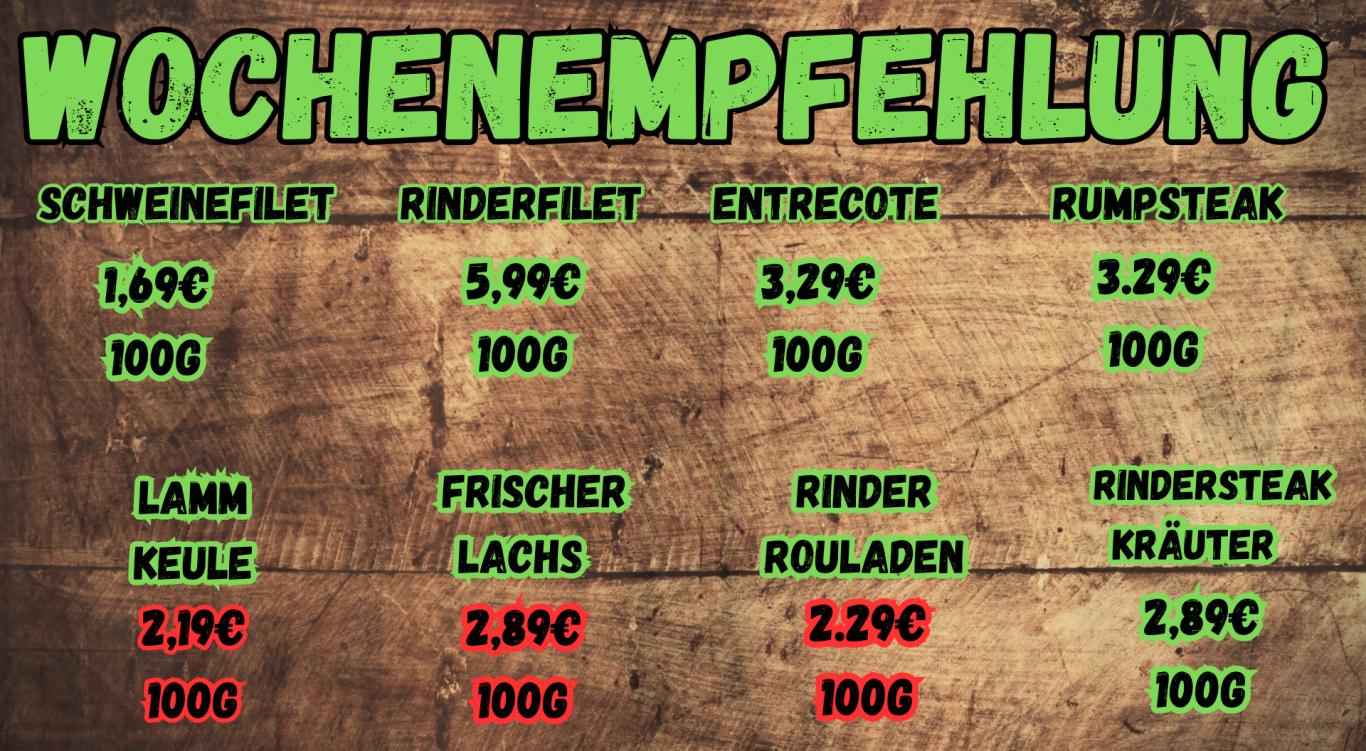 Immer wechselnde Specials von Dry Aged, Lachs und weitere Besonderheiten bei uns erhältlich. Immer nach Verfügbarkeit