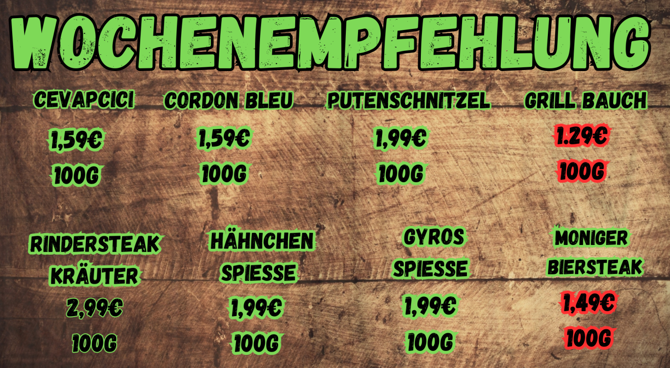Montag bis Freitag gibts bei uns immer wechselnde Wochenangebote - natürlich in Repples Beschde Qualität!